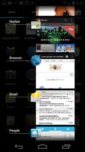 1.Multi-Tasking- Tap on the Multi-tasking button(if your phone came pre-loaded with ICS), or long press Home button till you get a list of running apps. Swipe to either left or right to close them!